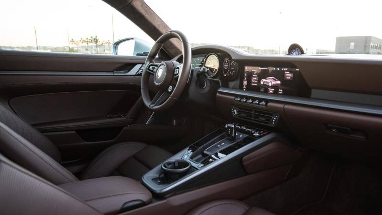 Noch deutlicher wird dieser Zeitensprung im Innenraum: Wie eh und je befindet sich das Zündschloss links vom Lenkrad und das Cockpit wird von einem analogen Drehzahlmesser dominiert. Doch links und rechts davon gibt es nun große digitale Anzeigen und daneben einen Touchscreen in der Größe eines Tablets. Auf dem kann man nicht nur online navigieren und sich allerlei Unterhaltung ins Auto holen, sondern auch so viel einstellen, dass Porsche die restliche Bedienlandschaft und vor allem die Mittelkonsole radikal entrümpelt hat.