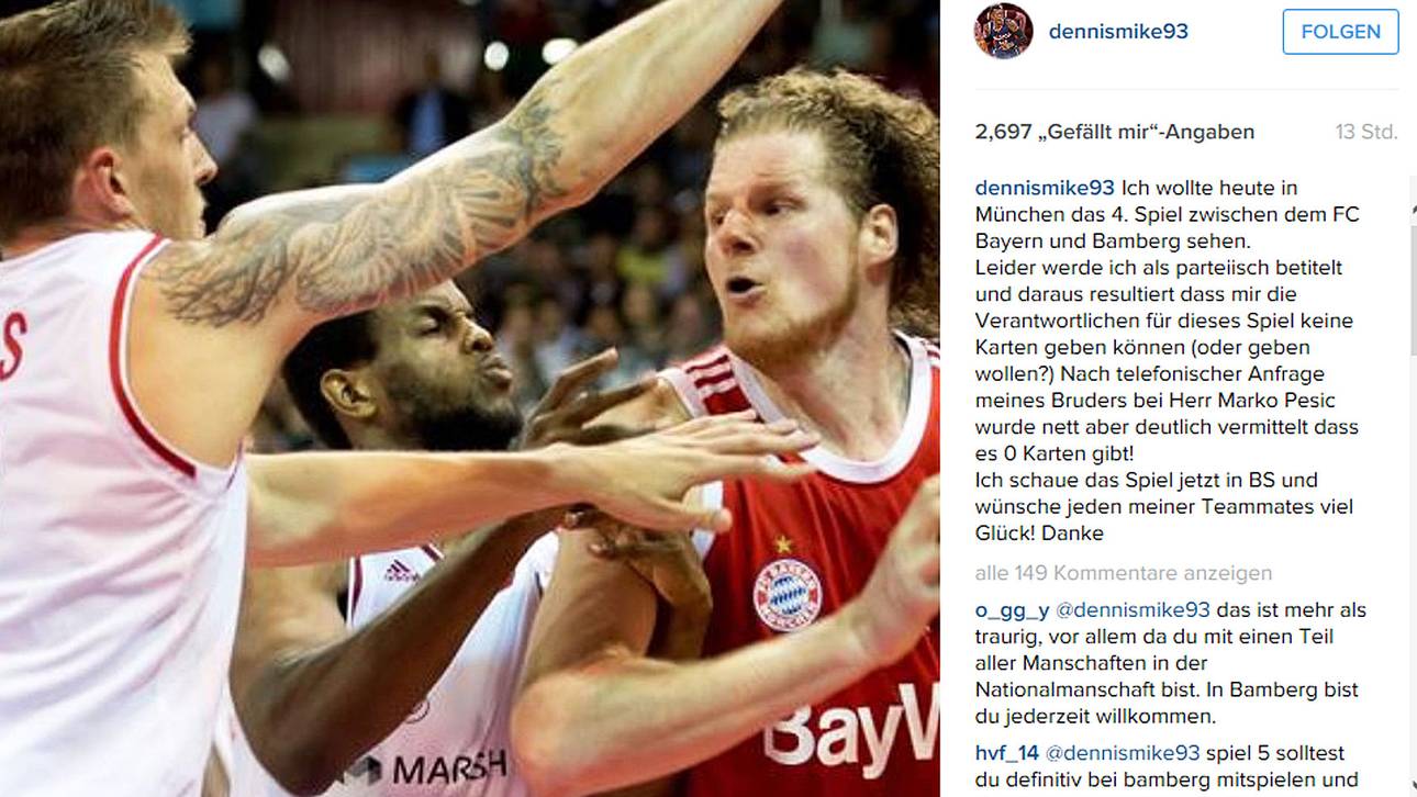 Dennis Schröder wirft den Basketball-Verantwortlichen des FC Bayern vor, ihm wegen seiner „Parteilichkeit“ Eintrittskarten für das vierte Duell der Münchner gegen die Brose Baskets Bamberg (83:73) verweigert zu haben. Das teilte der deutsche NBA-Star der Atlanta Hawks via instagram mit.