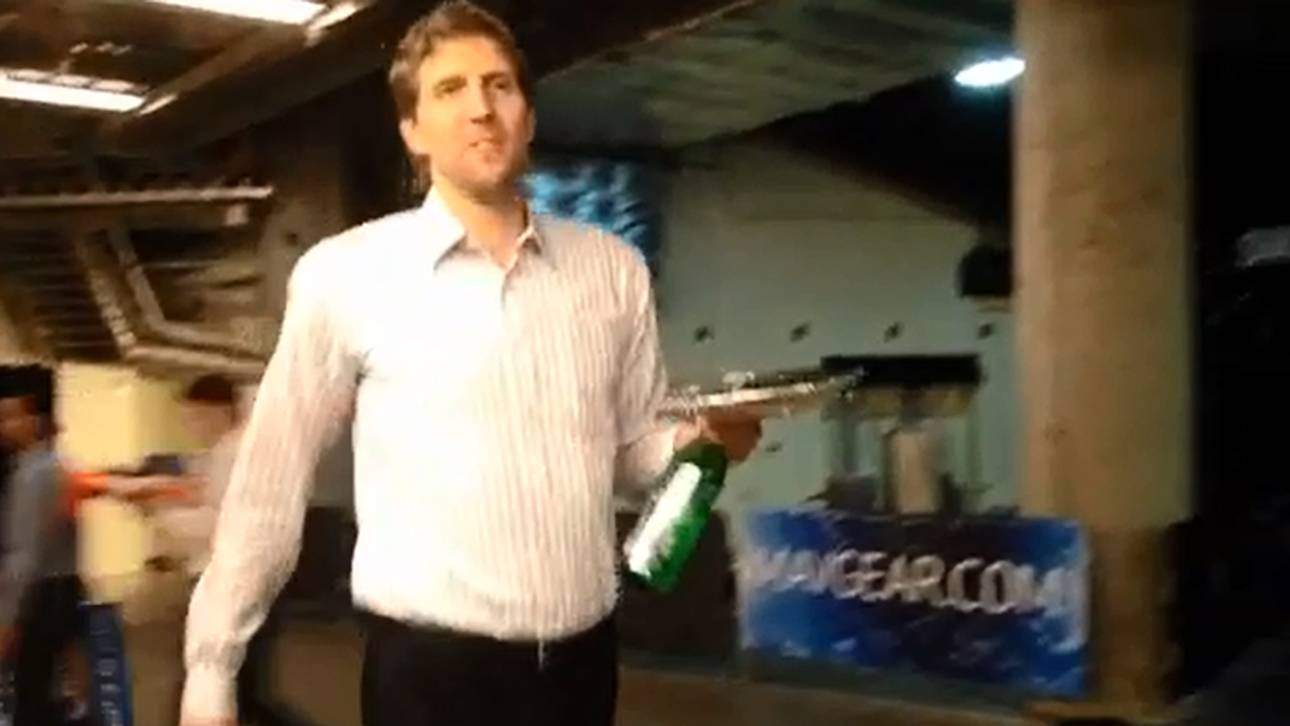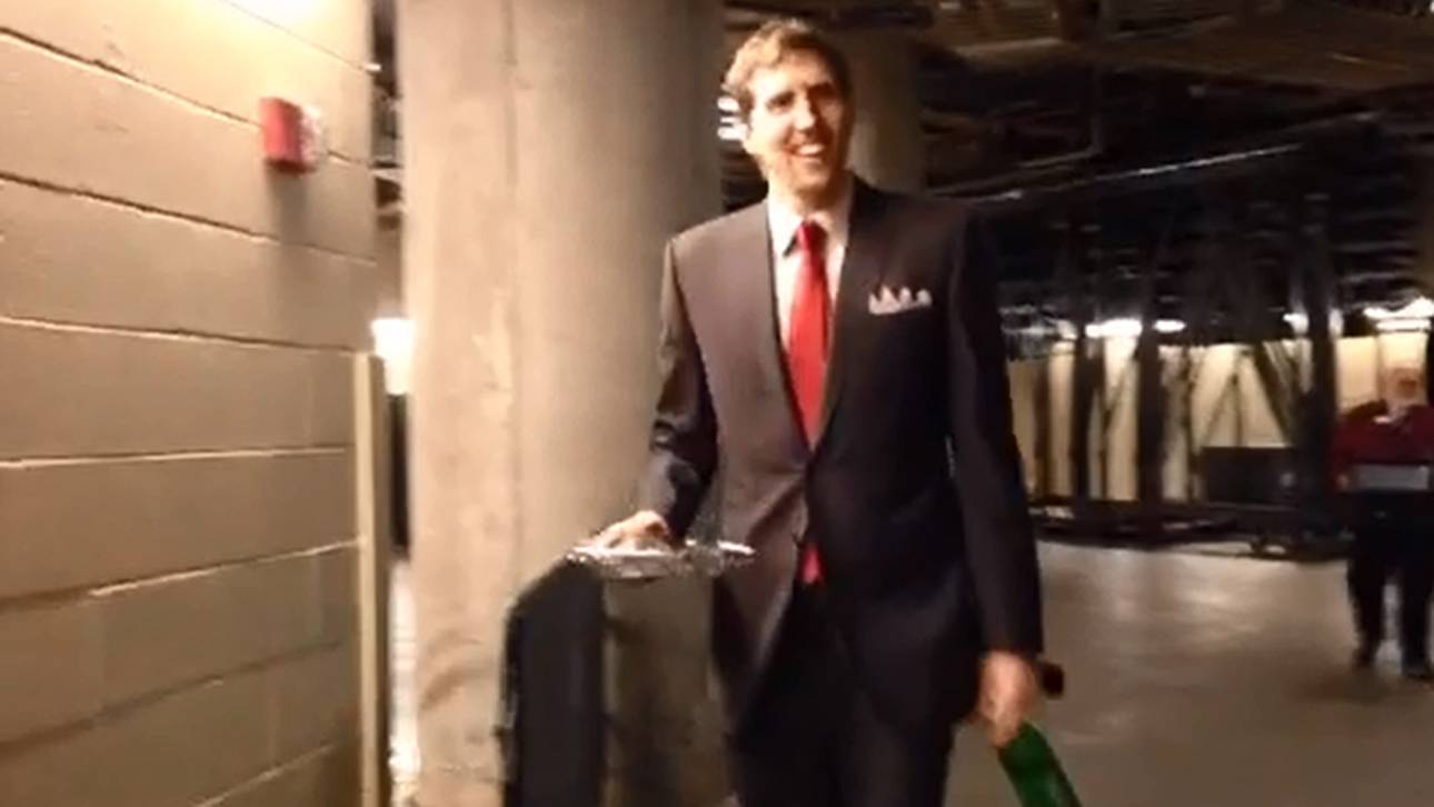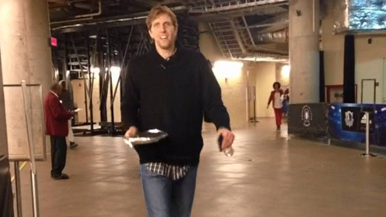 Die Dallas Mavericks veröffentlichen in regelmäßigen Abständen Vine-Videos von Nowitzki, wie er mit seinem Teller zu den Spielen kommt.