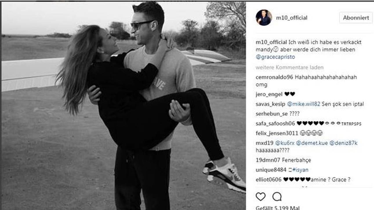 „Ich weiß, ich habe es verkackt, Mandy. Aber ich werde dich immer lieben!“ Dieser Post auf der Instagram-Seite von Nationalspieler Mesut Özil hat für mächtig Wirbel gesorgt.