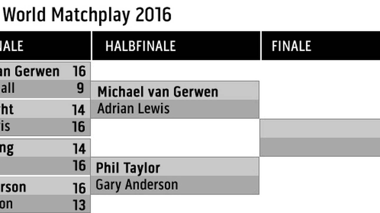 Bereits am Donnerstag hatten sich Michael van Gerwen und Adrian Lewis für das Halbfinale qualifiziert. Nach den Erfolgen von Taylor und Anderson stehen somit die Top 4 der Setzliste in der Vorschlussrunde.