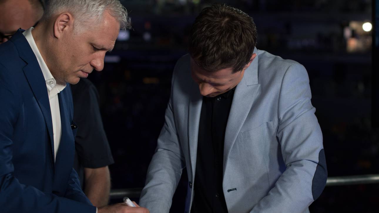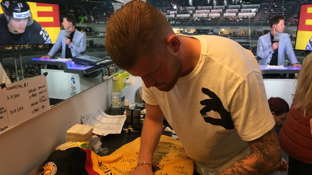 Schon jetzt kann sich die Liste der Unterschriften sehen lassen: Neben dem verletzten DEB-Kapitän und SPORT1-Experten Marcel Goc haben sich bereits Ex-Bundestrainer Hans Zach, die aktuellen Nationalspieler Tobias Rieder, Moritz Müller und Felix Brückmann, die ehemaligen Nationalspieler Sven Felski und Uli Hiemer, die Fußballprofis Sven und Lars Bender sowie Sebastian Rode und der Präsident des russischen Eishockey-Verbandes, Wladislaw Tretjak, auf dem Trikot verewigt.