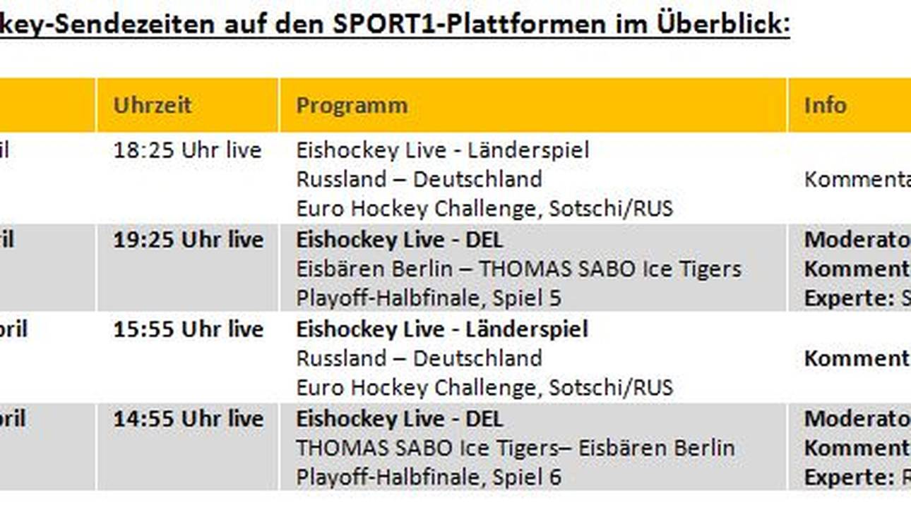 In den kommenden drei Tagen hat SPORT1 auf seinen Plattformen ein hochkarätiges Eishockey-Programm zu bieten, denn von Freitag bis Sonntag werden gleich vier Livespiele übertragen.