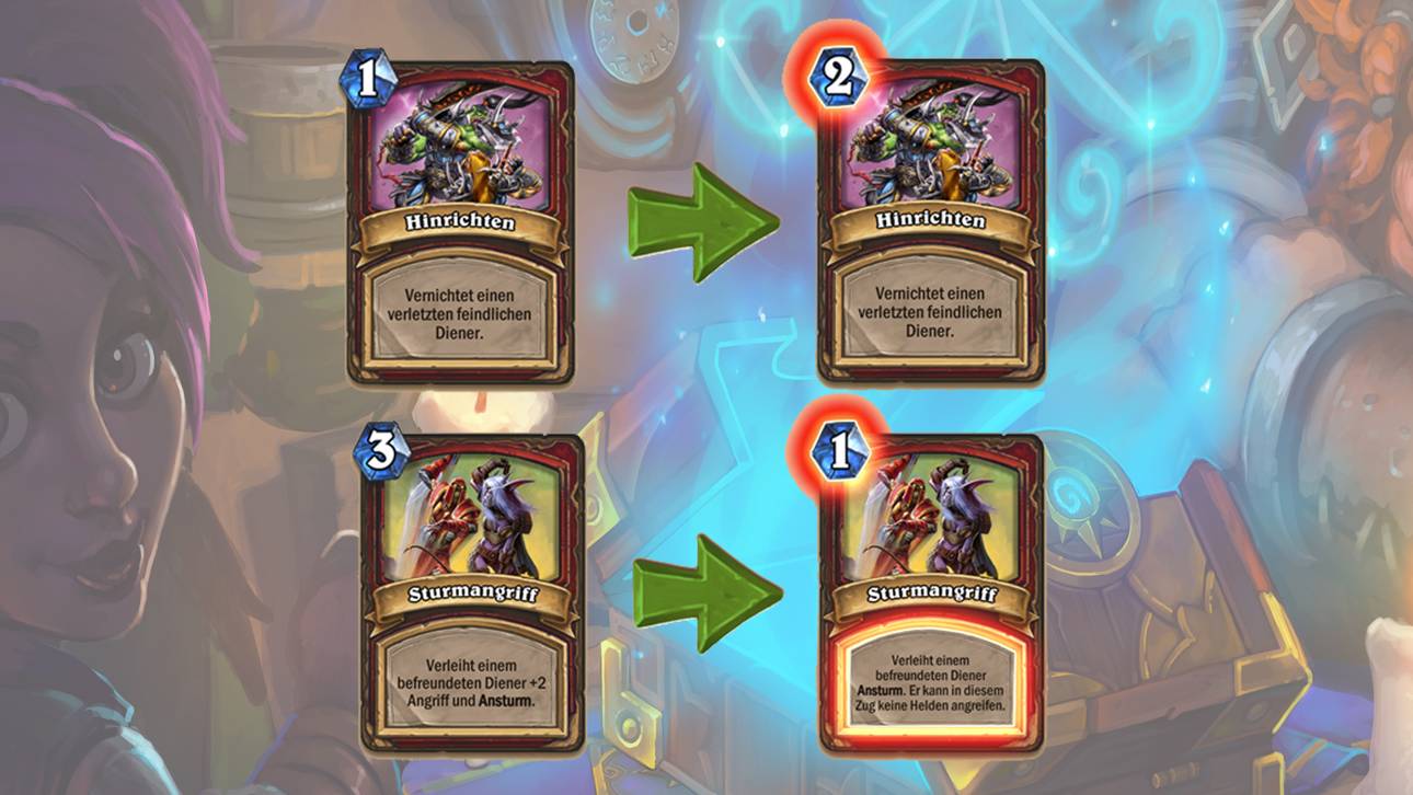 Der Krieger gehört zu den Klassen mit den meisten Removal-Spells. Egal ob Shieldslam, Bash, Slam, Revenge oder Brawl – all diese Spells bieten Möglichkeiten um gegnerische Minions zu entfernen. Execute gehört zu den beliebtesten Removals. Ihre Anpassung auf zwei Mana ist durchaus vertretbar und wird die Häufigkeit in Krieger-Decks in keinster Weise beeinträchtigen.