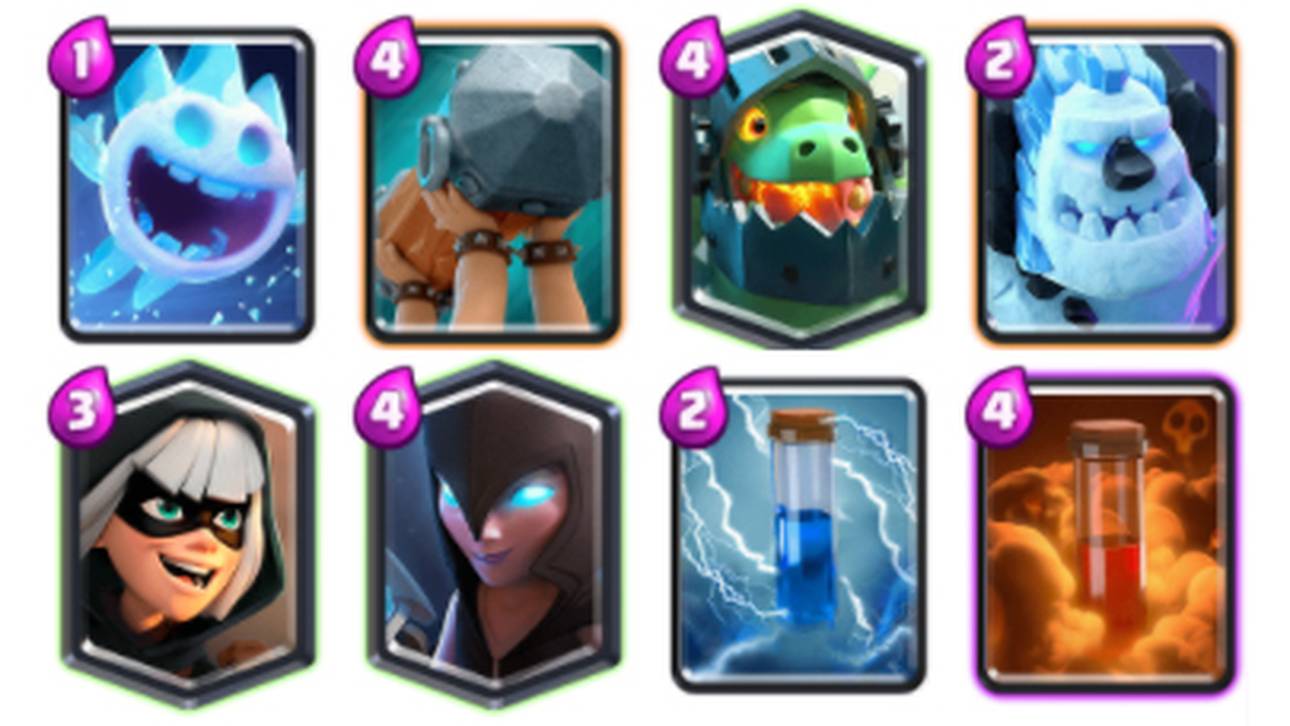 Als unterstützende Karten sind der Eisgolem und der Eisgeist im Deck, welche beide sowohl offensiv als auch defensiv vielseitig eingesetzt werden können. Zudem halten sie die Elixierkosten des Decks niedrig, was schnelle Rotationen zulässt.