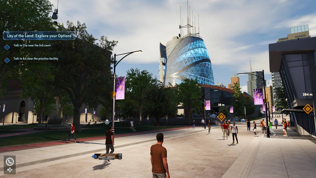 Die MyPlayer-Karriere hat ein umfangreiches Facelift erhalten. Nun starten wir in einer recht umfangreichen und belebten Stadt, in der von Level 1 an auch andere reale Spieler zu sehen sind. Geh dorthin, sprich mit diesem NPC, entscheide dich, wann du gedraftet werden willst. Eine kleine Prise RPG ist definitiv enthalten. Optisch macht die City einiges her und beinhaltet dabei zudem die Elemente aus den Vorjahren. Ein absoluter Quantensprung ist es nicht, die immersive Note ist 2K aber nicht abzusprechen.