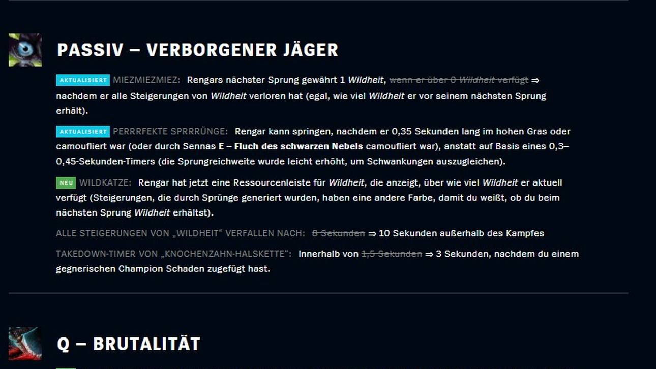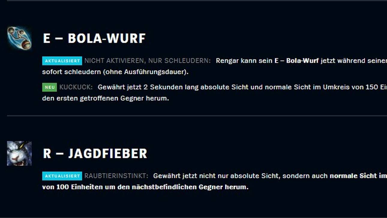 - Rengar: Beim zottligen Jungle-Assasinen wurde einiges verändert. Sowohl die Passive Fähigkeit, als auch seine Q, E und Ultimate sind überarbeitet worden.
