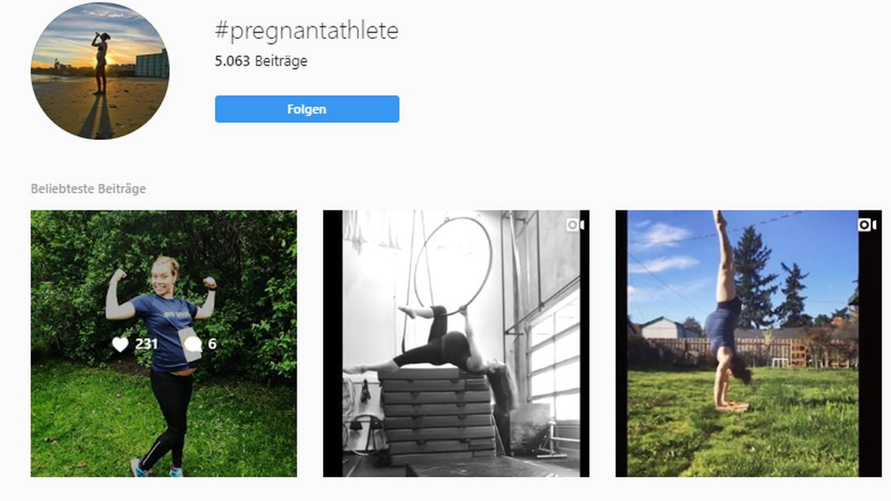 Unter ”#pregnantathlete”, also schwangere Athletin, wurden auf Instagram über 4900 Bilder und Videos gepostet. Die Schwangeren meistern da Gewichte, bei denen auch viele Männer ins Schwitzen geraten, oder turnen an Ringen.