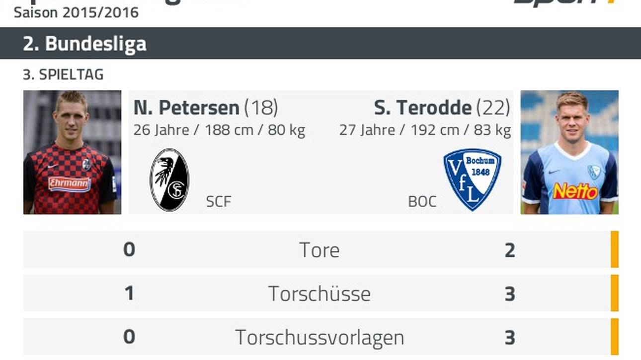 Christian Günter per Eigentor (65.) und zweimal Simon Terodde (70./75.) erzielten die Tore für den VfL. Marc Torrejon (83.) traf für die Gastgeber und flog kurz danach mit Rot vom Platz (89.). Zuvor hatte bereits Freiburgs Mensur Mujdza (57.) die Gelb-Rote Karte gesehen.