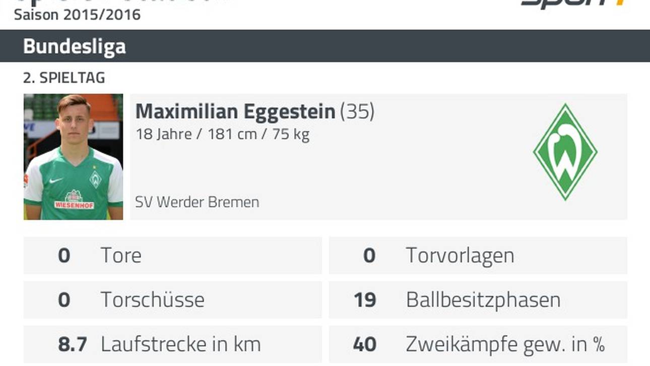 Youngster Eggestein war von allen Spielern aus den Anfangsformationen beider Teams am seltensten am Ball und kam lediglich auf 19 Ballkontakte.