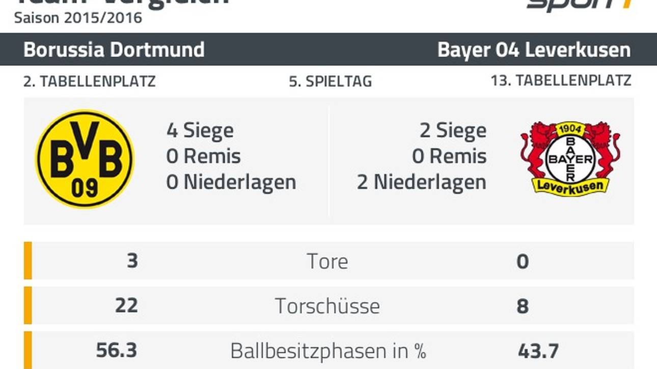 Während der BVB einen perfekten Saisonstart feiert, drohen die ambitionierten Rheinländer angesichts der mageren Ausbeute von nur sechs Punkten nach fünf Spieltagen vorzeitig die Spitzenränge aus den Augen zu verlieren. (DATENCENTER: Ergebnisse und Spielplan)
