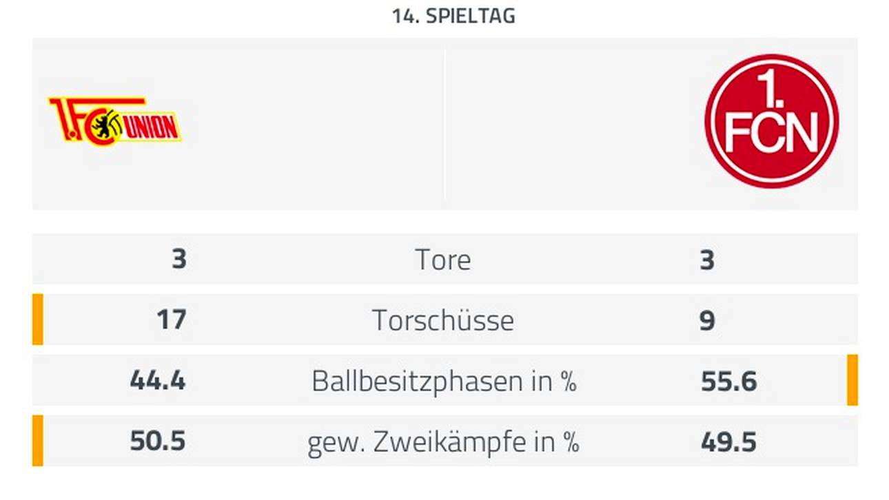 Vor 21.552 Zuschauern unterlief dem Berliner Toni Leistner in der fünften Minute ein Eigentor zur Gästeführung. Bobby Wood (21.) gelang der Ausgleich für Union nach einem Patzer von Club-Torwart Thorsten Kirschbaum.