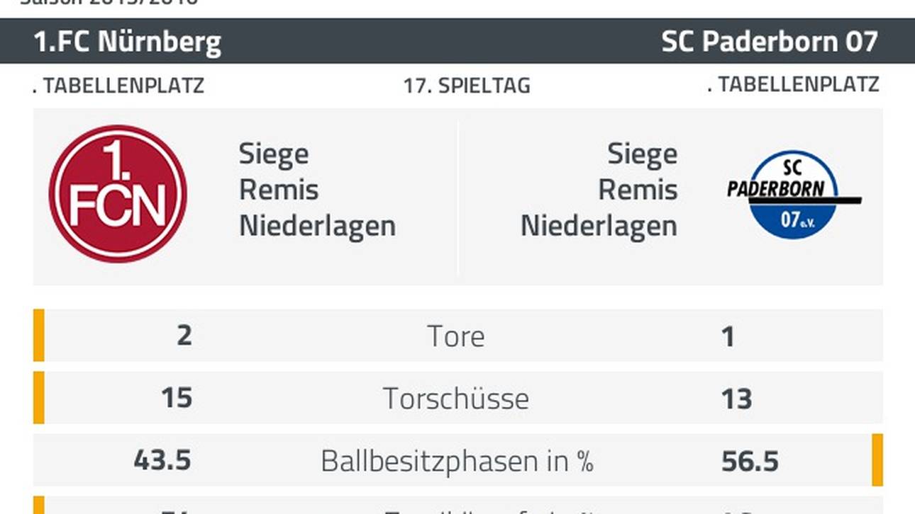 Gegen den von Stefan Effenberg trainierten SC Paderborn kamen die Franken beim Hinrundenabschluss zu einem verdienten 2:1 (1:0)-Sieg und kletterten vorerst auf Relegationsplatz drei. Paderborn wartet derweil seit nunmehr fünf Ligaspielen auf einen Sieg und steckt tief im Tabellenkeller fest. (DATENCENTER: Tabelle)