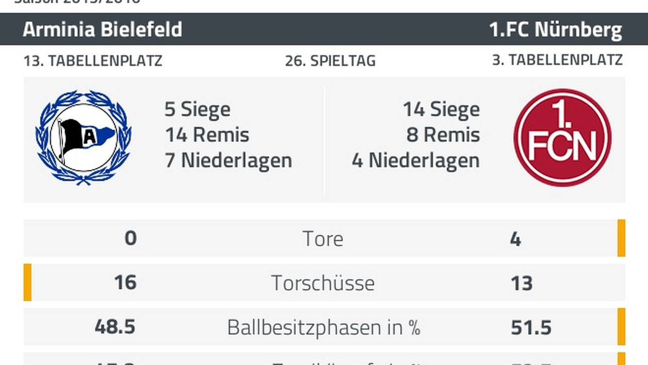 Die Franken investierten vor 15.003 Zuschauern zunächst deutlich weniger ins Spiel als die Gastgeber. Bielefeld kam dem gegnerischen Tor näher als der Club, Christopher Nöthe scheiterte zweimal mit Schüssen von der Strafraumgrenze (25. und 28.) (SERVICE: Das Spiel zum Nachlesen im TICKER).