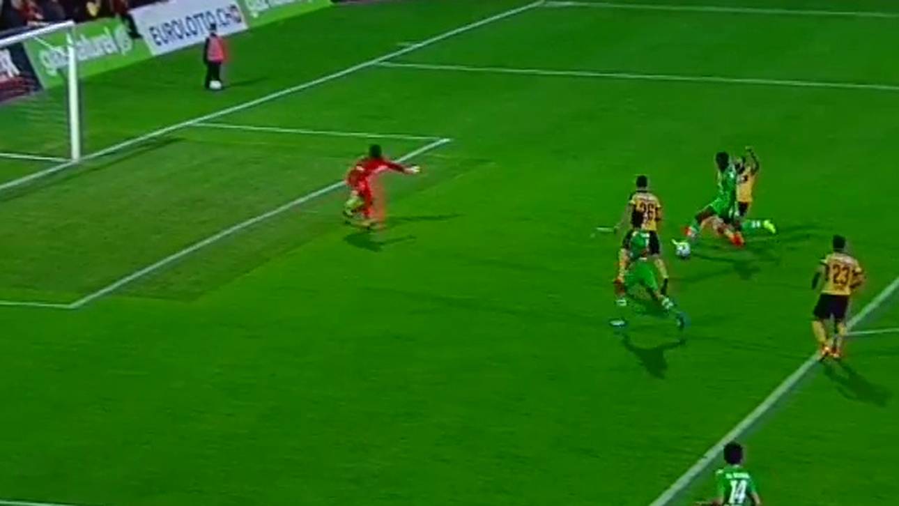 Bertone scheitert am Gladbacher Keeper, der ins richtige Eck springt.