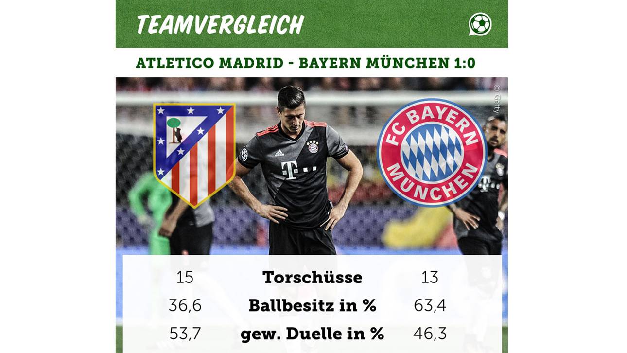 Griezmann, der den Bayern im jüngsten Duell mit seinem Treffer im Rückspiel den K.o. versetzt hatte, und dessen Partner Torres waren quirliger und gefährlicher als auf der anderen Seite Robert Lewandowski (Statistiken der Champions League).