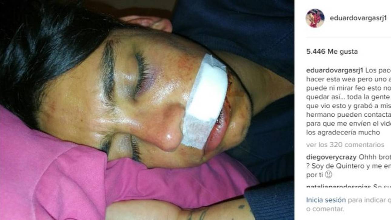 Vargas’ Post zeigt ein Bild von einem Mann, dessen Gesicht mit Blutergüssen übersät ist und fordert mögliche Zeugen auf, sich bei ihm zu melden. Chilenische Medien berichten von einem Streit zwischen den beiden Parteien, die Polizisten sollen infolgedessen gewalttätig geworden sein.