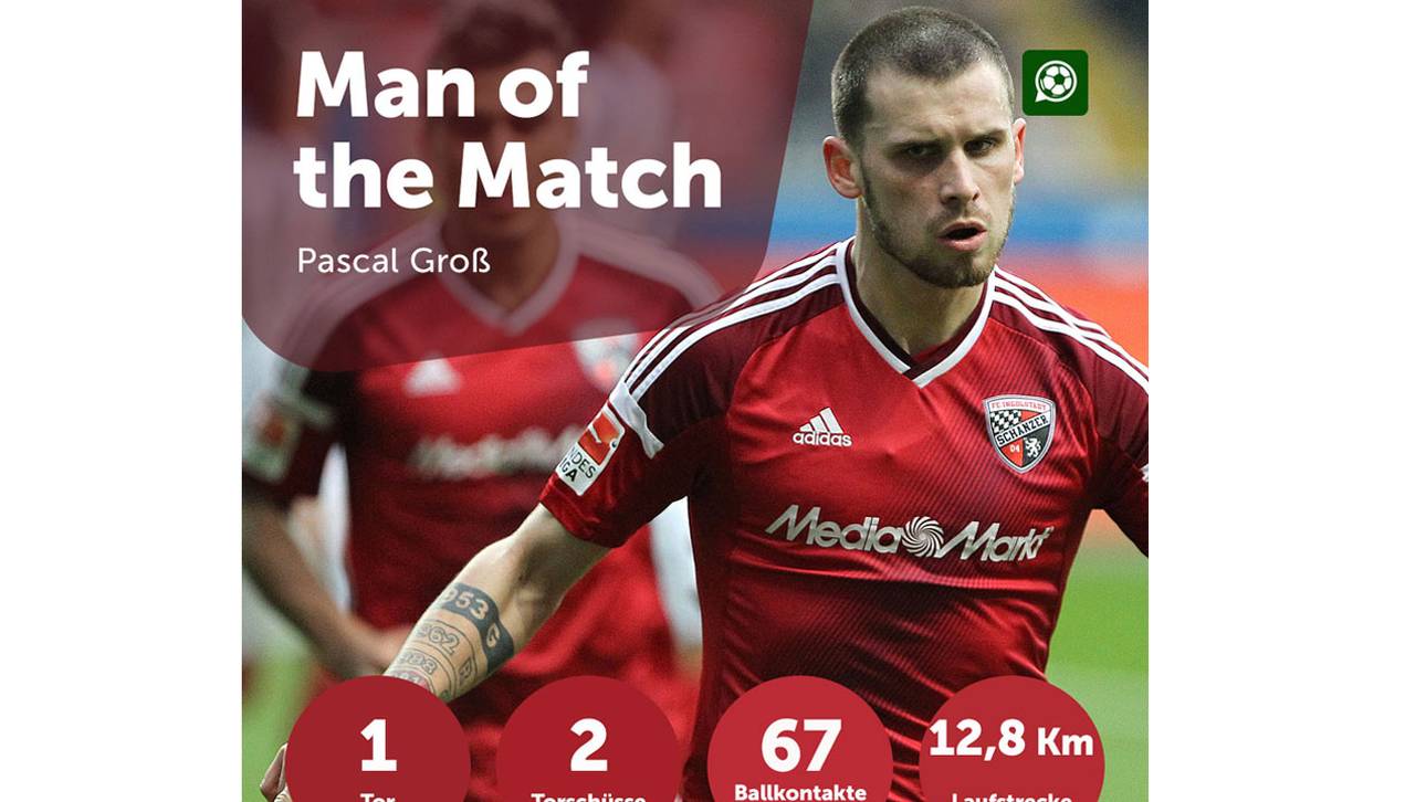 Vor rund 46.000 Zuschauern besiegelten Romain Bregerie (26.) mit seinem ersten Bundesligator und Pascal Groß (69., Foulelfmeter) den dritten Auswärtserfolg der Ingolstädter in der laufenden Saison.