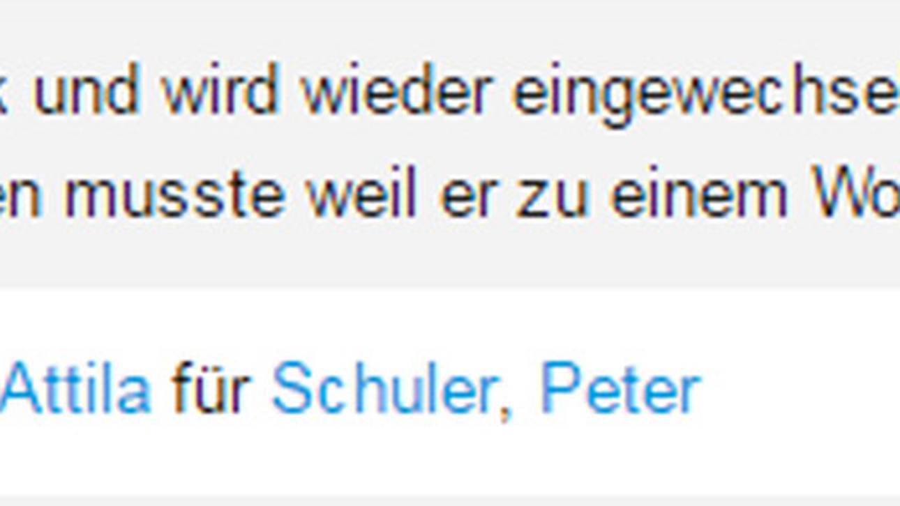 Mit seiner kuriosen Besichtigungs-Aktion ist Attila aber nicht einmal im eigenen Team der Wechsel-Meister: Mitspieler Peter Schuler, für den Attila in der 81. Minute auf den Platz zurückkehrte, wurde bereits in der 62. einmal aus- und in der 76. wieder eingewechselt.