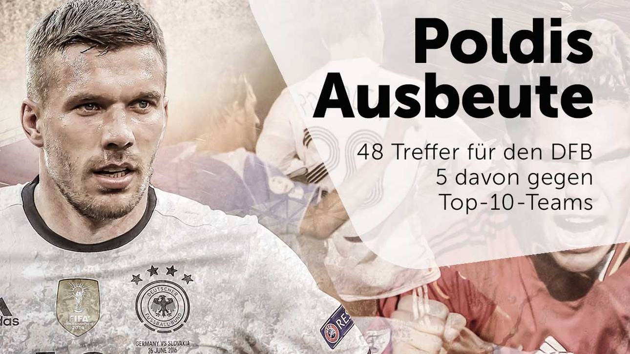 23 Mal netzte er gegen Mannschaften von den Plätzen elf bis 50 des Rankings ein. Und 20 Tore erzielte Podolski gegen Teams, die nicht einmal unter den besten 50 rangierten.