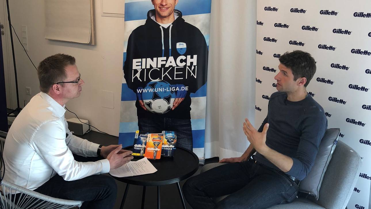 Thomas Müller ist zum dritten Mal das Gesicht der Gillette Uni-Liga und derzeit für die aktuelle „Bereit. Für jeden Tag“- Kampagne im TV zu sehen