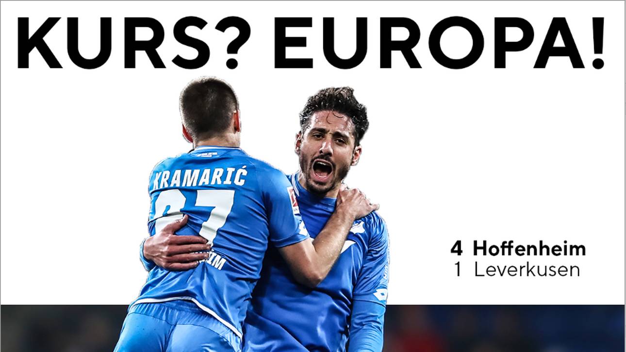 Der Algerier Belfodil (10., 61.), ein Eigentor von Sven Bender (52.) sowie Andrej Kramaric (79.) sorgten für den deutlichen Sieg der Kraichgauer, die bis auf einen Punkt an Bayer herangerückt sind. Daran änderte auch das Tor des Ex-Hoffenheimers Kevin Volland (17.) nichts. (LIVETICKER zum Nachlesen)