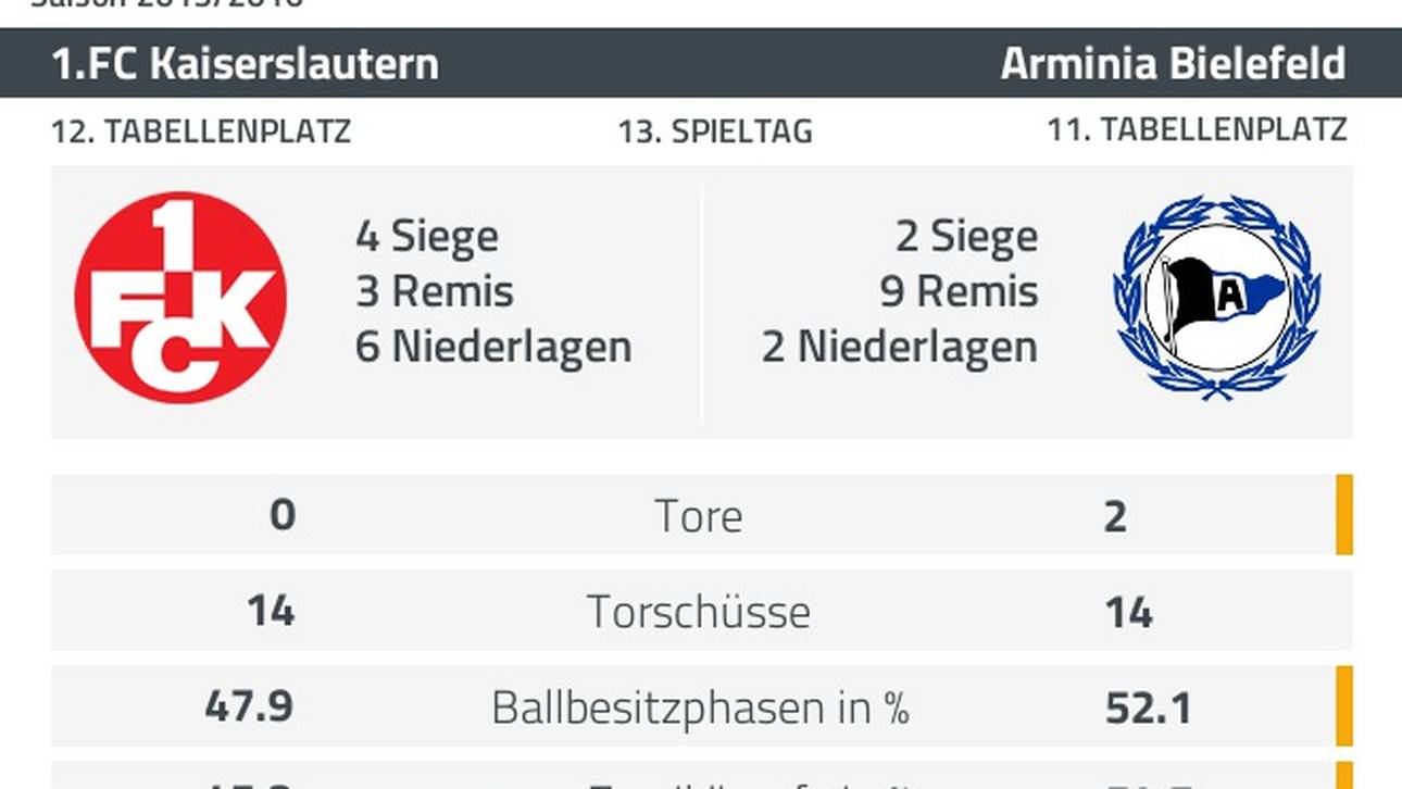 Der 1. FC Kaiserslautern hat seine Talfahrt weiter fortgesetzt. Drei Tage nach dem Pokal-Aus kassierte die Mannschaft von Trainer Konrad Fünfstück kassierte beim 0:2 (0:0) gegen Aufsteiger Arminia Bielefeld die dritte Liga-Niederlage in Folge und fiel mit 15 Zählern auf den 12. Platz zurück.