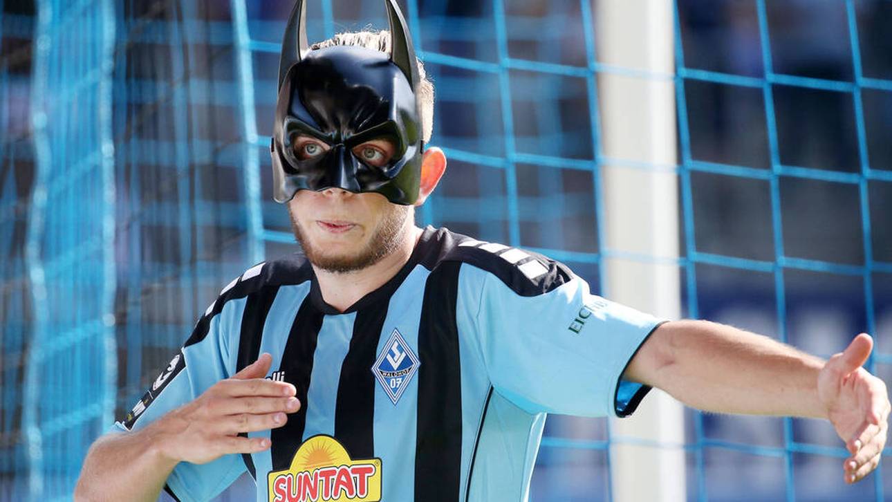 Mit dieser Aktion erinnerte der 22-jährige Franzose an den früheren Angreifer von Borussia Dortmund, Pierre-Emerick Aubameyang (heute FC Arsenal), der sich 2015 beim Derby gegen Schalke 04 für ein Tor mit Batman-Maske feiern ließ. Lebeau und seine Waldhöfer waren in Party-Stimmung. (DATEN: Ergebnisse und Spielplan der 3. Liga)