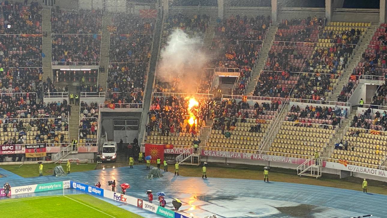 Um 22.15 Uhr zündeten die nordmazedonischen Fans unter großem Applaus Pyrotechnik – nur wenige Sekunden später traf Timo Werner zum 2:0 (70.) und ließ die Anhänger verstummen.