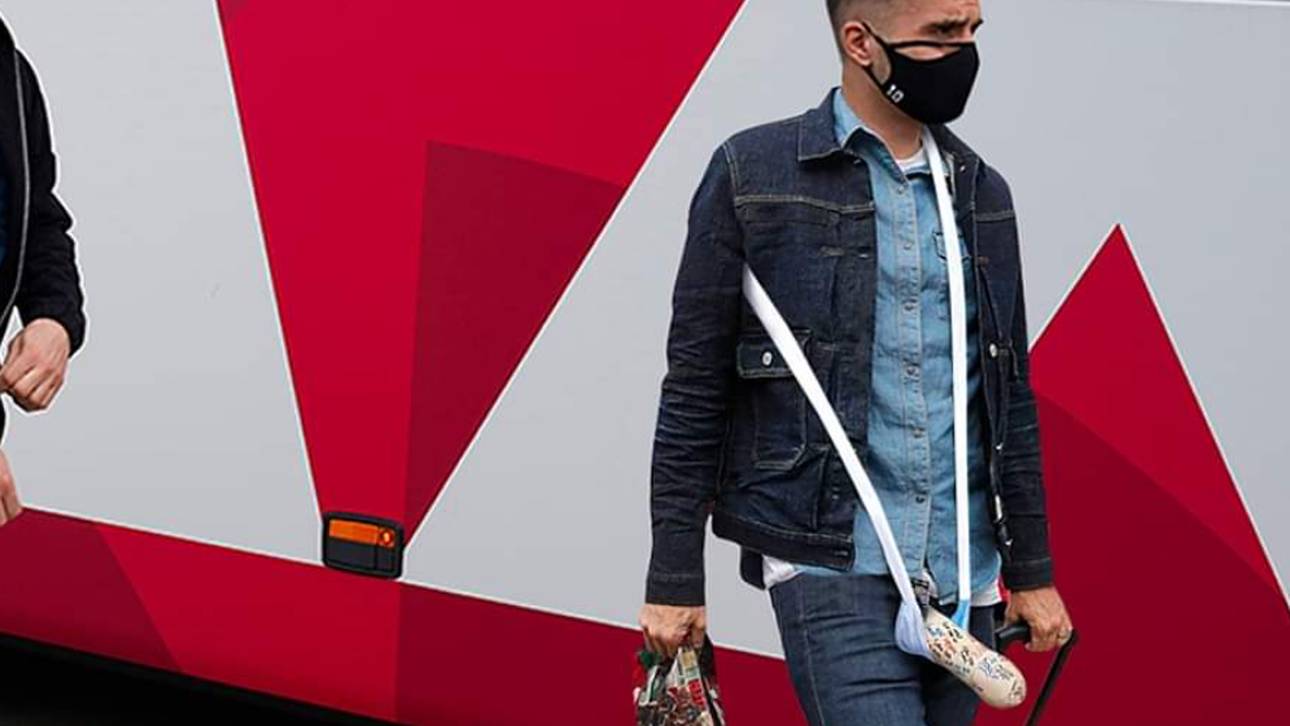 Und es wird noch wilder: Offensichtlich hatten diverse Teamkameraden auf dem Gips unterschrieben.