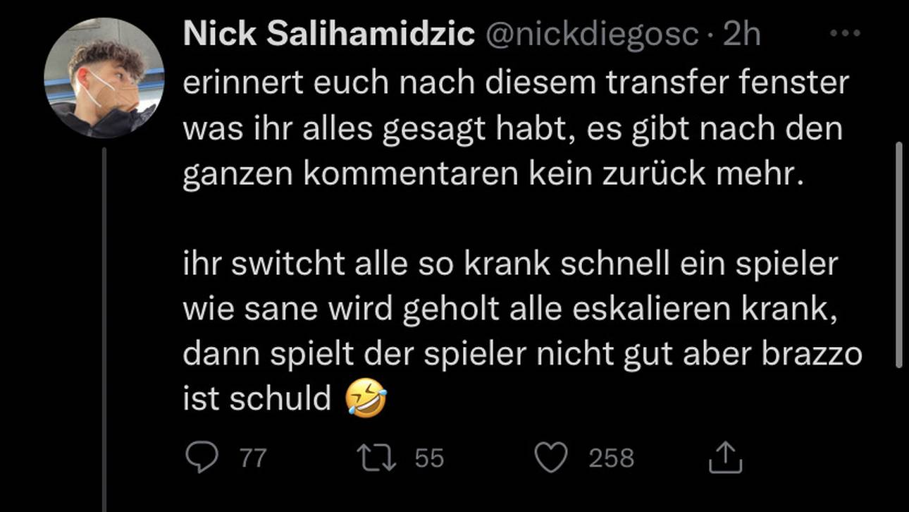 „Erinnert euch nach diesem Transferfenster, was ihr alles gesagt habt, es gibt nach den ganzen Kommentaren kein zurück mehr“, postete der FCB-Nachwuchsspieler am Donnerstagmittag. Nach SPORT1-Informationen handelt es sich um einen echten Account.