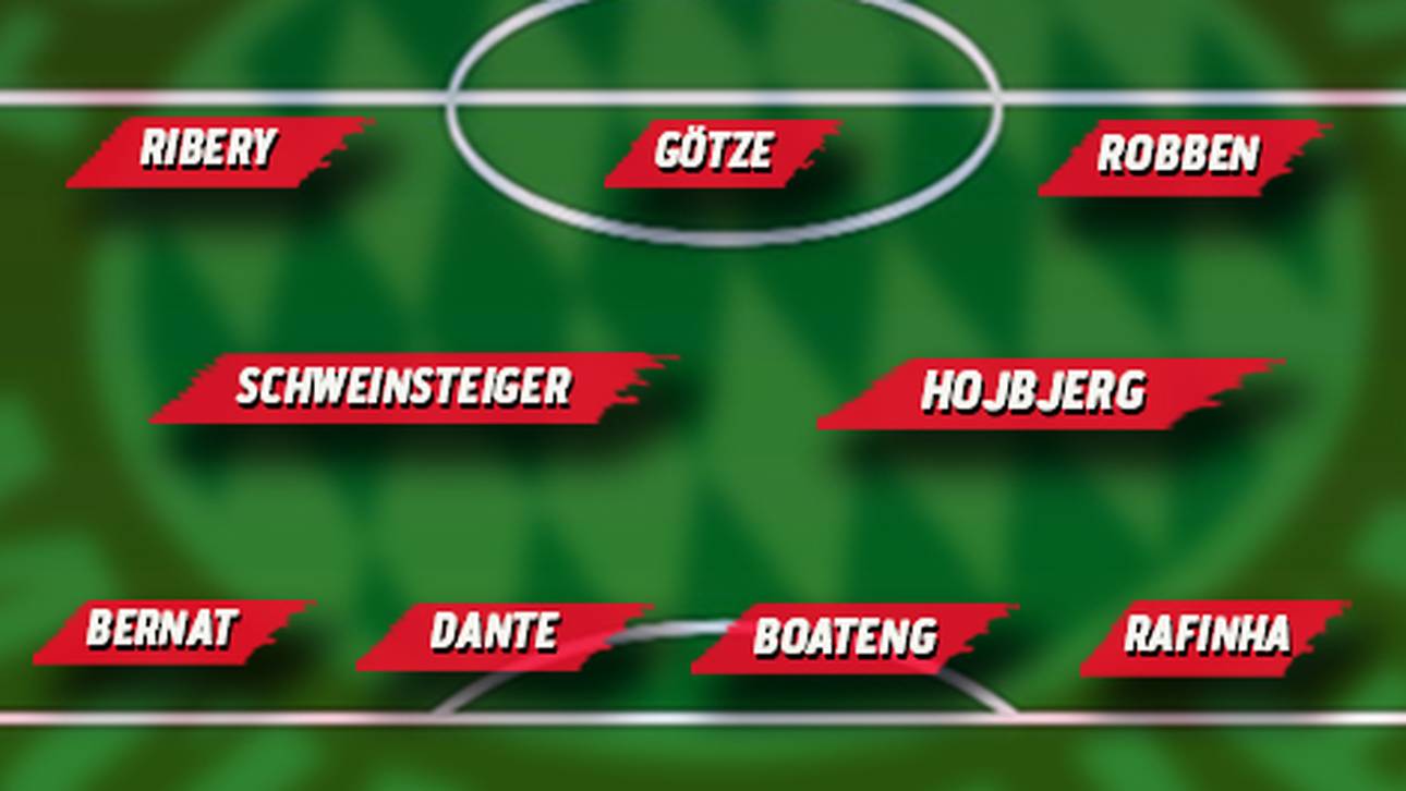 Guardiola kann trotz der vielen Ausfälle immer noch ein Starensemble auf den Rasen schicken. Neun aktuelle Nationalspieler plus die international erfahrenen Franck Ribery und Rafinha dürften in Mainz spielen. Diese Elf hätte laut „Transfermarkt.de“ immerhin noch einen Gesamtwert von 314 Millionen Euro.