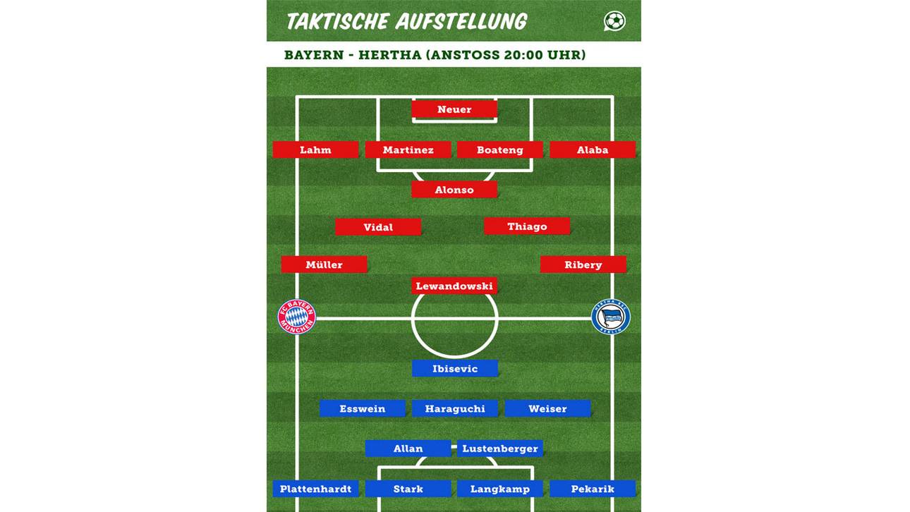 Insgesamt nimmt Ancelotti fünf Änderungen gegenüber dem 3:1 gegen Ingolstadt vor: Die genesenen Philipp Lahm, Thomas Müller und David Alaba stehen ebenso von Beginn an auf dem Spielfeld wie Jerome Boateng und Thiago.