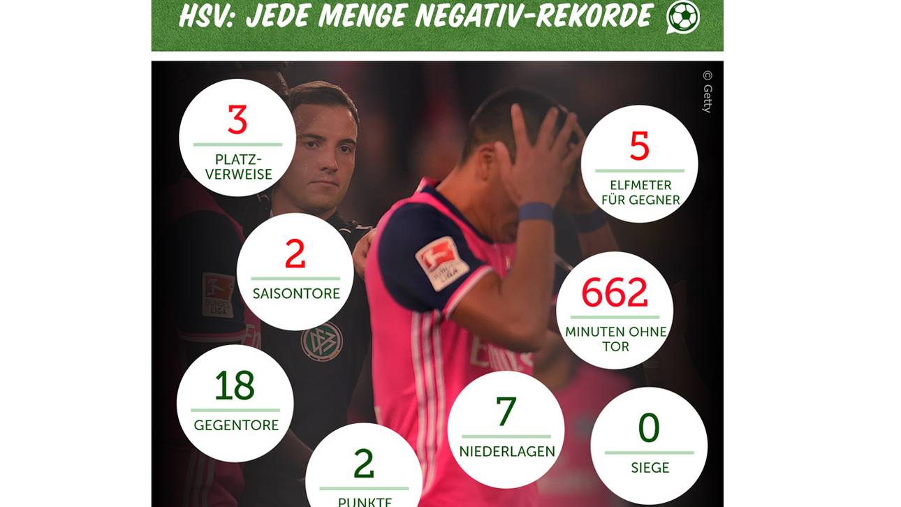 Der HSV hat nun nach neun Spieltagen erst zwei Tore auf dem Konto, was gleich in doppelter Hinsicht bemerkbar ist: Zum einen gab es in der Bundesliga-Historie zu diesem Zeitpunkt noch nie so eine erfolglose Mannschaft. Zum anderen haben die Hamburger nun schon mehr Platzverweise als Tore auf dem Konto.