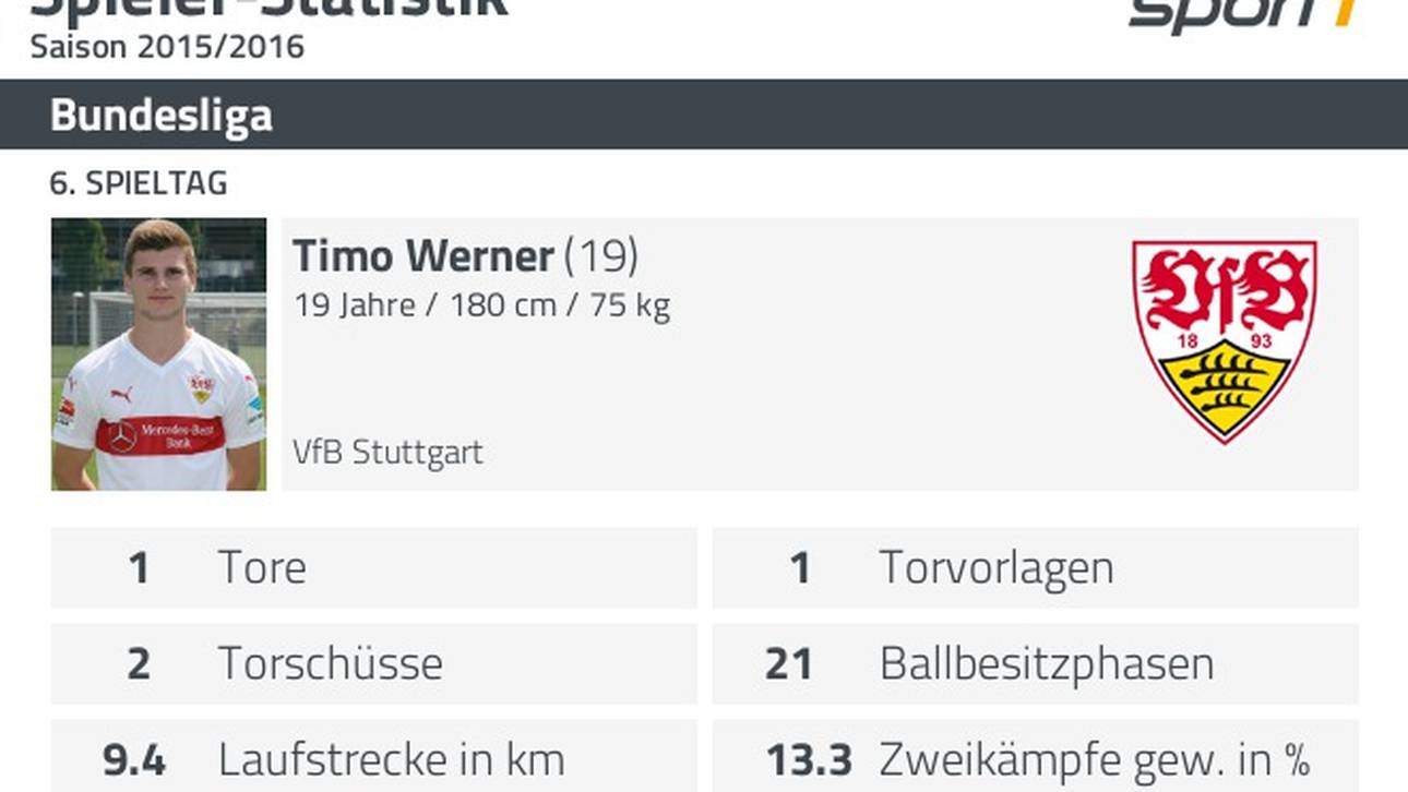 Während die Schwaben sich insgesamt (19:8 Torschüsse) glücklich schätzen konnten, endlich mal einen „dreckigen“ Sieg eingefahren zu haben, durfte sich Werner als heimlicher Matchwinner fühlen – ungeachtet der miesen Quote gewonnener Zweikämpfe von gerade mal 13 Prozent. (SERVICE: Das Spiel zum Nachlesen im TICKER)