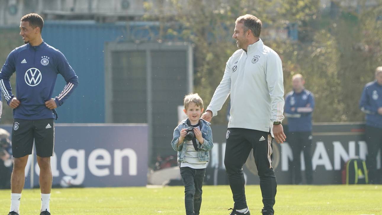Der Fünfjährige trug ein weißes DFB-Trikot und schaute seinen Idolen gespannt bei der Arbeit zu – bis Flick ihn plötzlich zu sich rief.