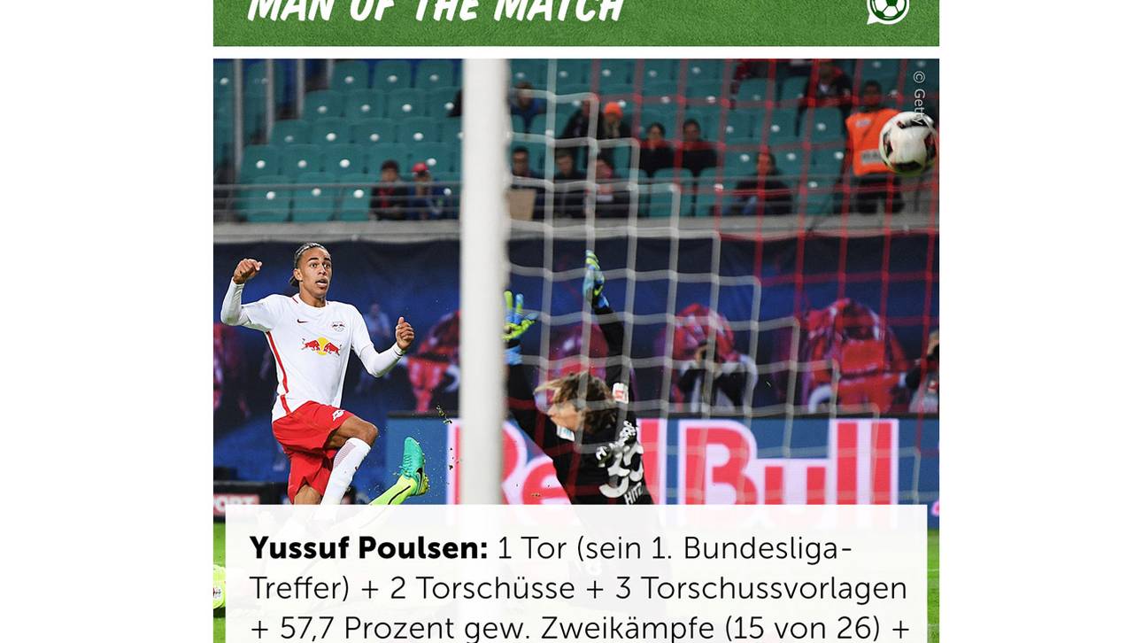 Nach 172 Tagen traf Yussef Poulsen wieder für Leipzig und erzielte dabei sein erstes Bundesligator, das seinem Team den Sieg gegen Augsburg bescherte.