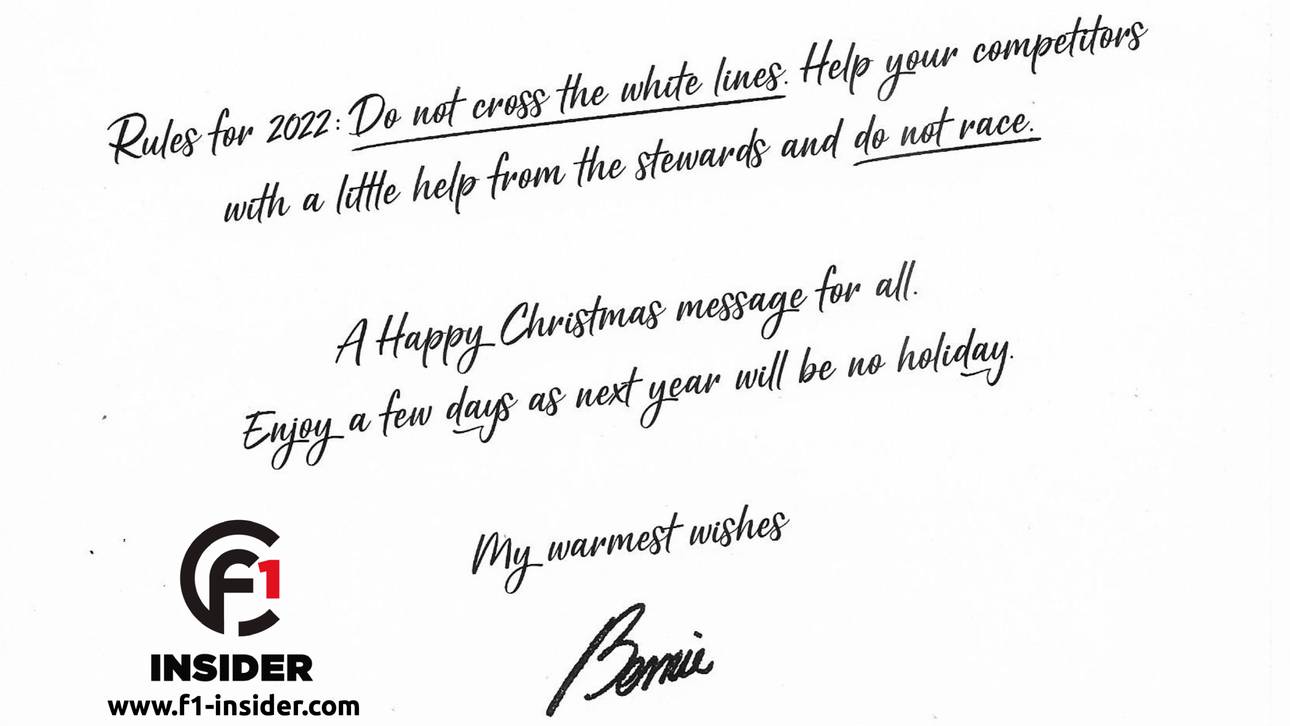 Sie hat gute Tradition, die Weihnachtskarte von Bernie Ecclestone (91). Der ehemalige Formel-1-Boss nimmt darin stets die abgelaufene Formel-1-Saison humorvoll in einer Karikatur aufs Korn.
