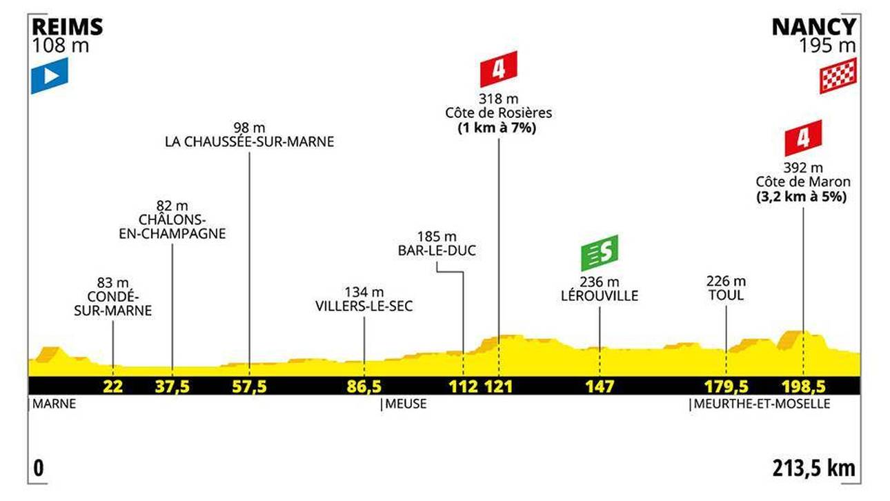 In der inoffiziellen Hauptstadt der Weinbauregion Champagne machen sich die Fahrer auf, um die 213,5 Kilometer in Richtung Nancy hinter sich zu bringen. Damit wird erstmals während der diesjährigen Tour eine Etappe ausschließlich auf französischem Boden ausgetragen.