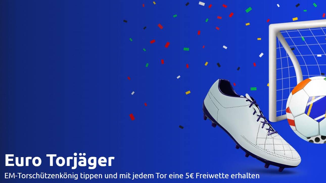 Kunden, die eine Wette mit Mindesteinsatz von 20 € auf EM bester Torschütze abgeben, kriegen pro Tor des gewählten Spielers eine 5 € Freebet.