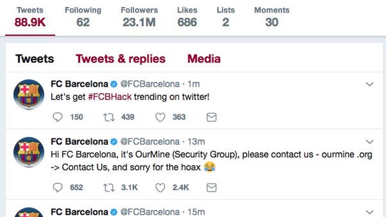 Am frühen Morgen äußerten sich die Katalanen dann: „Unsere Accounts wurden heute Nacht gehackt. Wir arbeiten daran, das Problem so schnell wie möglich zu lösen.“ Die Tweets von OurMine wurden mittlerweile gelöscht.
