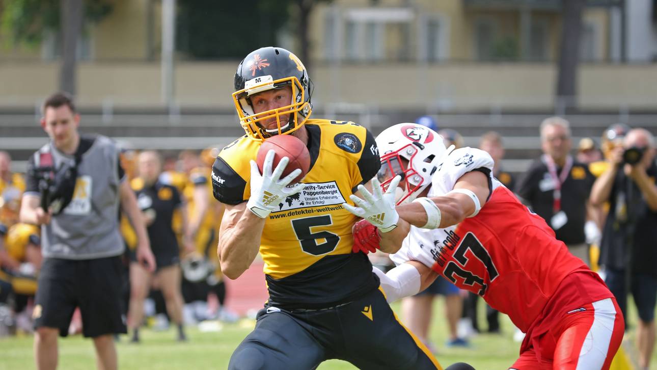 Und die beiden prominentesten dieser drei, die Finalisten des letzten German Bowls aus Schwäbisch Hall und Braunschweig, treffen gleich an diesem Samstag aufeinander (Schwäbisch Hall Unicorns – NewYorker Lions Braunschweig live im TV und im Livestream auf SPORT1 ab 16 Uhr). Fünf der letzten sechs German Bowls bestritten Schwäbisch Hall Unicorns und New Yorker Lions gegeneinander, dazu noch einmal das Finale der europäischen „Big6“ 2015.