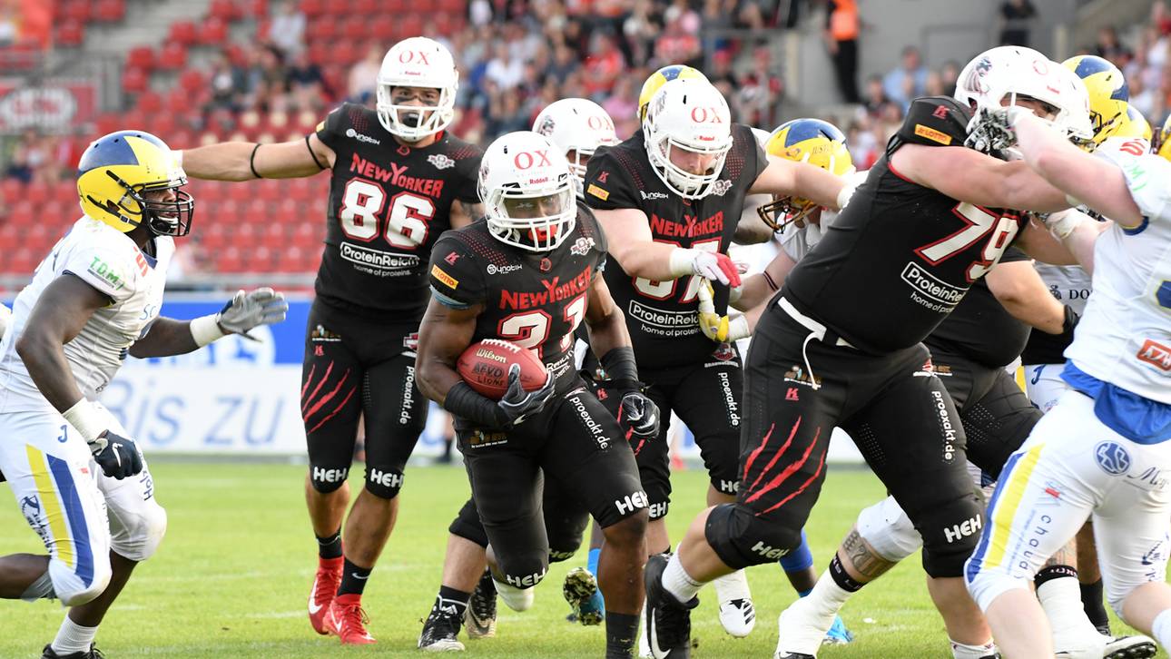 Die New Yorker Lions haben das Hinspiel zu Hause mit 35:28 gewonnen. Nach einem Sieg in Hildesheim oder einer Niederlage mit maximal sieben Punkten wären sie zwar anders als Schwäbisch Hall nicht direkt Gruppensieger. Aber es wäre nur noch Formsache, weil die New Yorker Lions anschließend gegen den Punktlieferanten aus Düsseldorf und den Sechsten aus Kiel antreten dürfen, Hildesheim dagegen noch zu Playoff-Mitbewerbern nach Köln und Dresden muss.